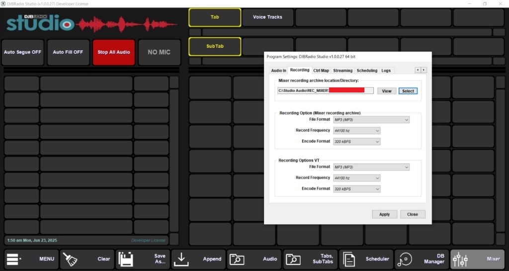 2. Open DJB Radio Studio and navigate to the Virtual Mixer.